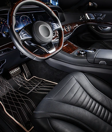 L’amélioration du confort passe par l’ajout de housses de siège sur mesure, de tapis de sol ou d’un volant en cuir.